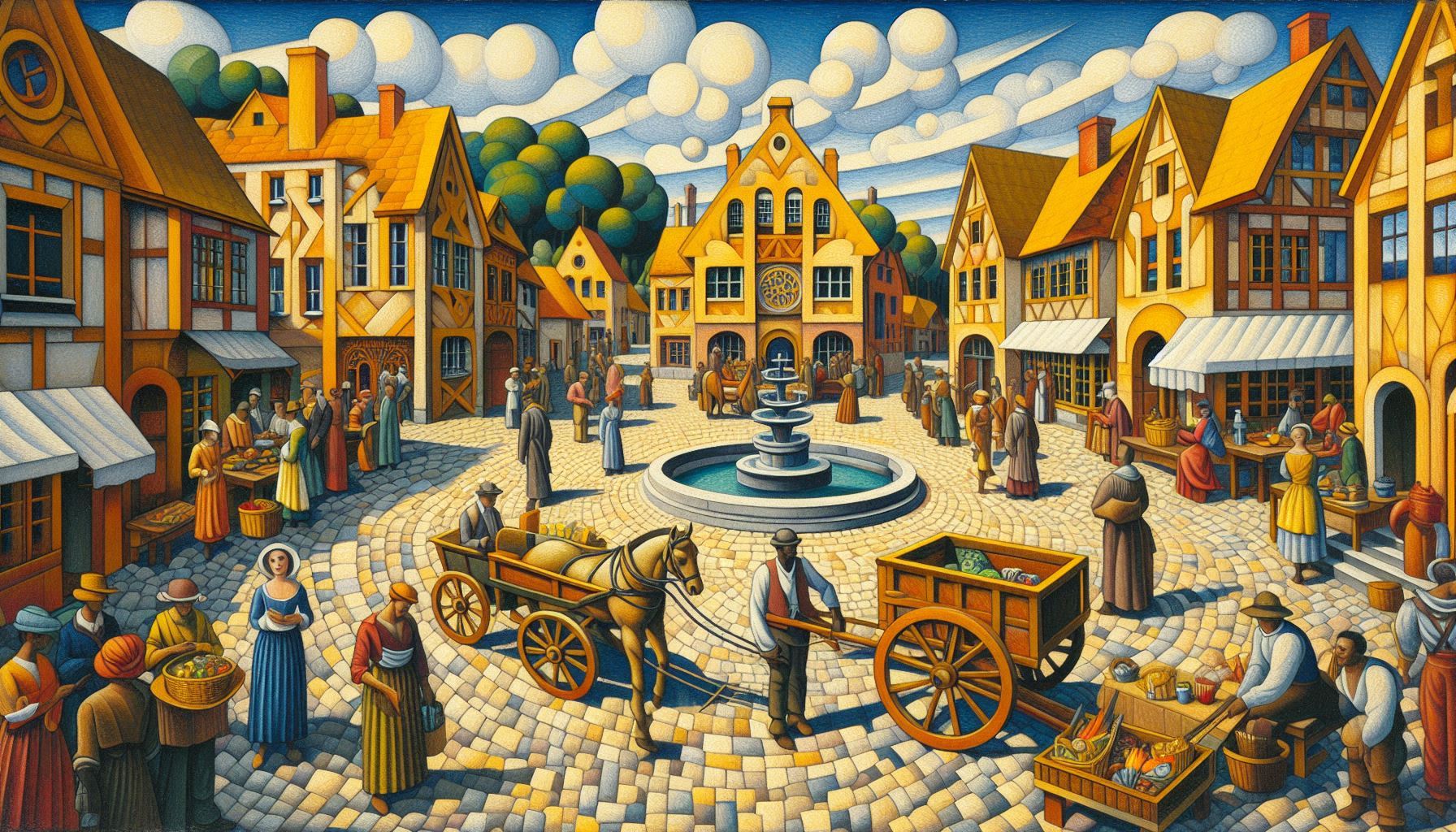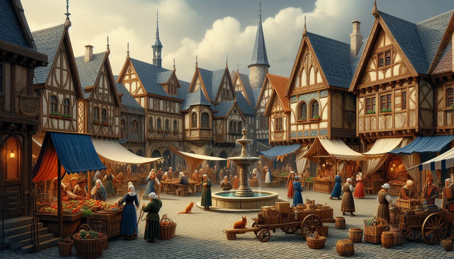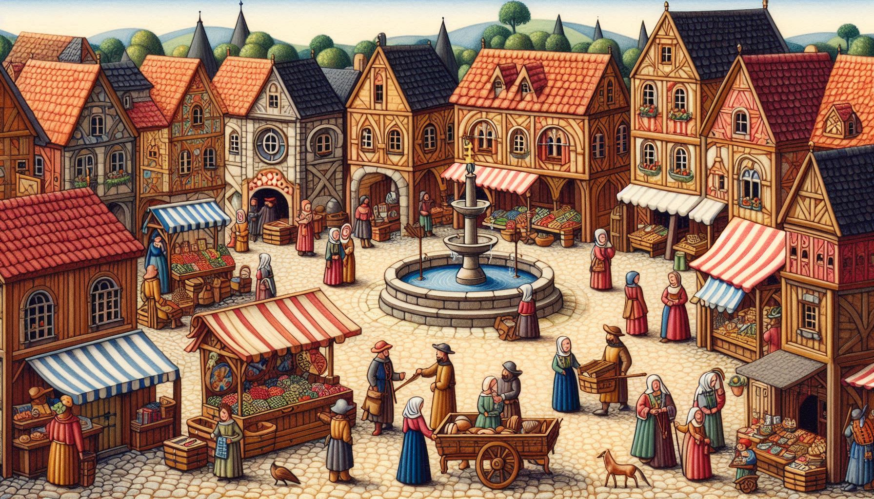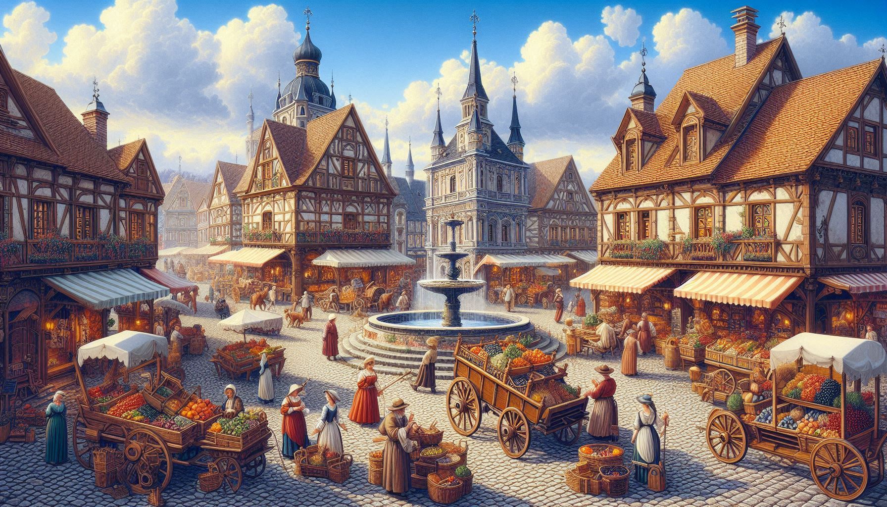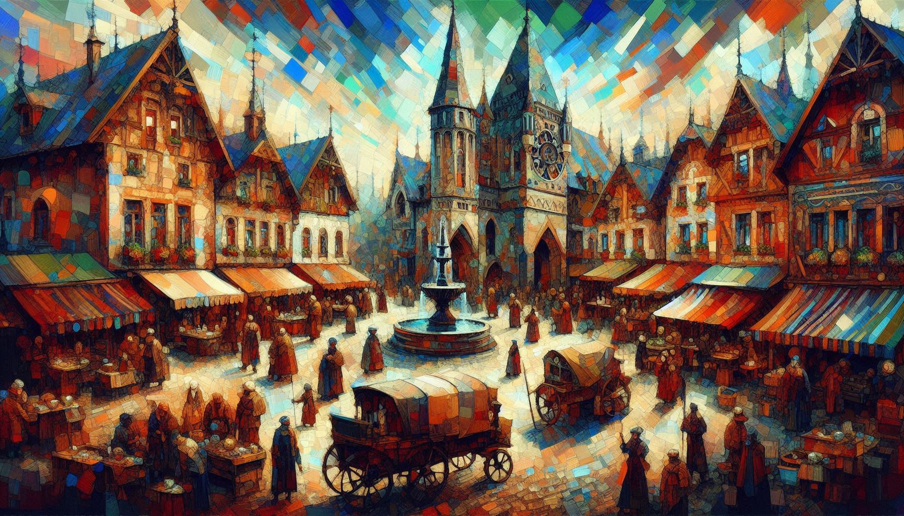 Markt im Mittelalter - Klumbies-de-AI-Kunst