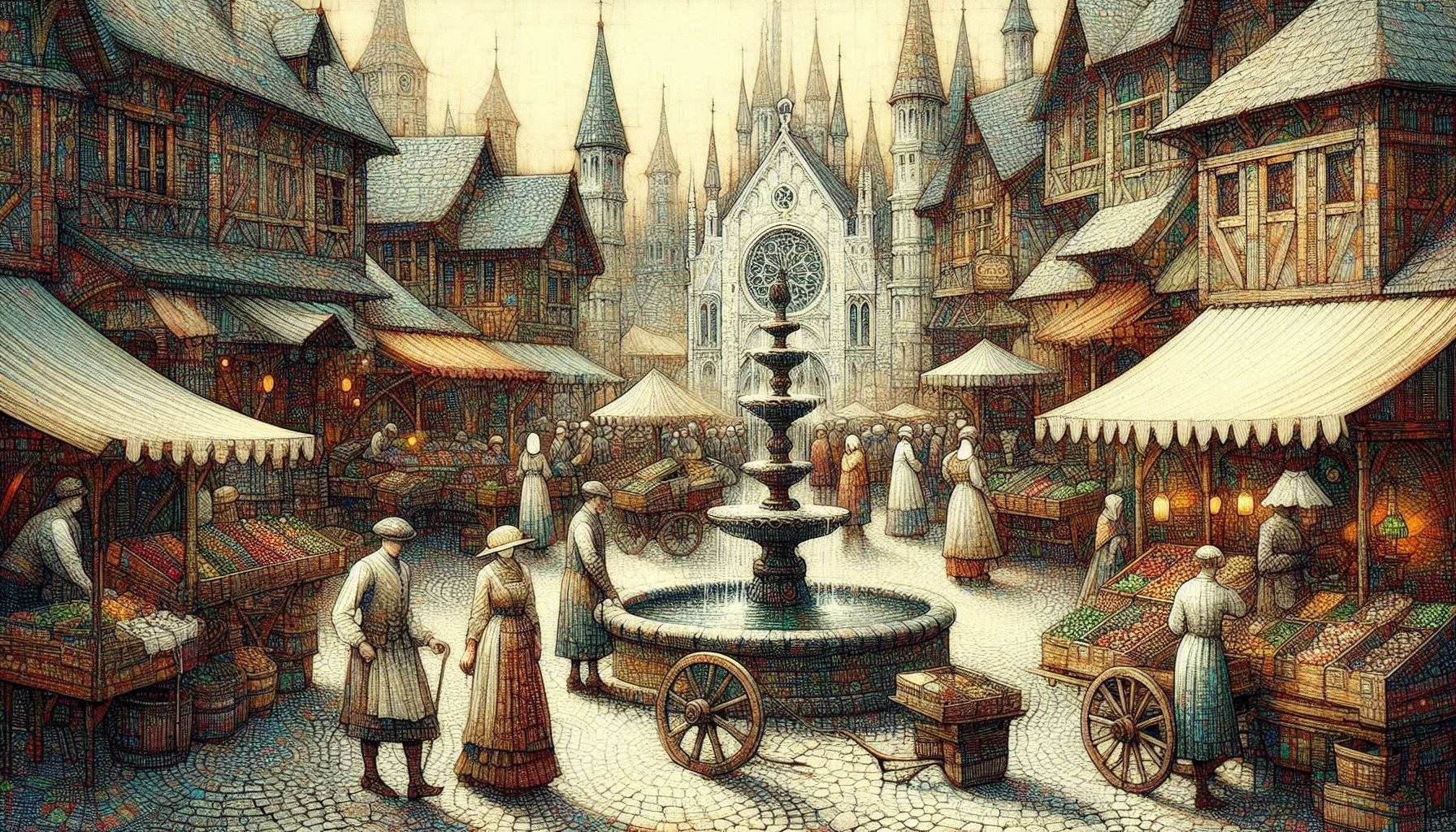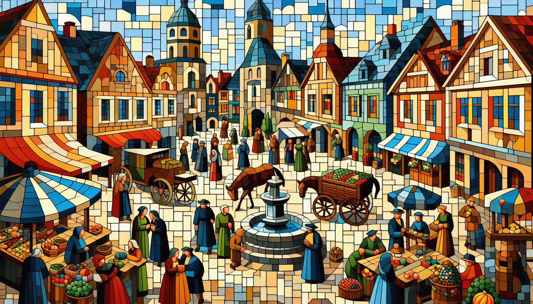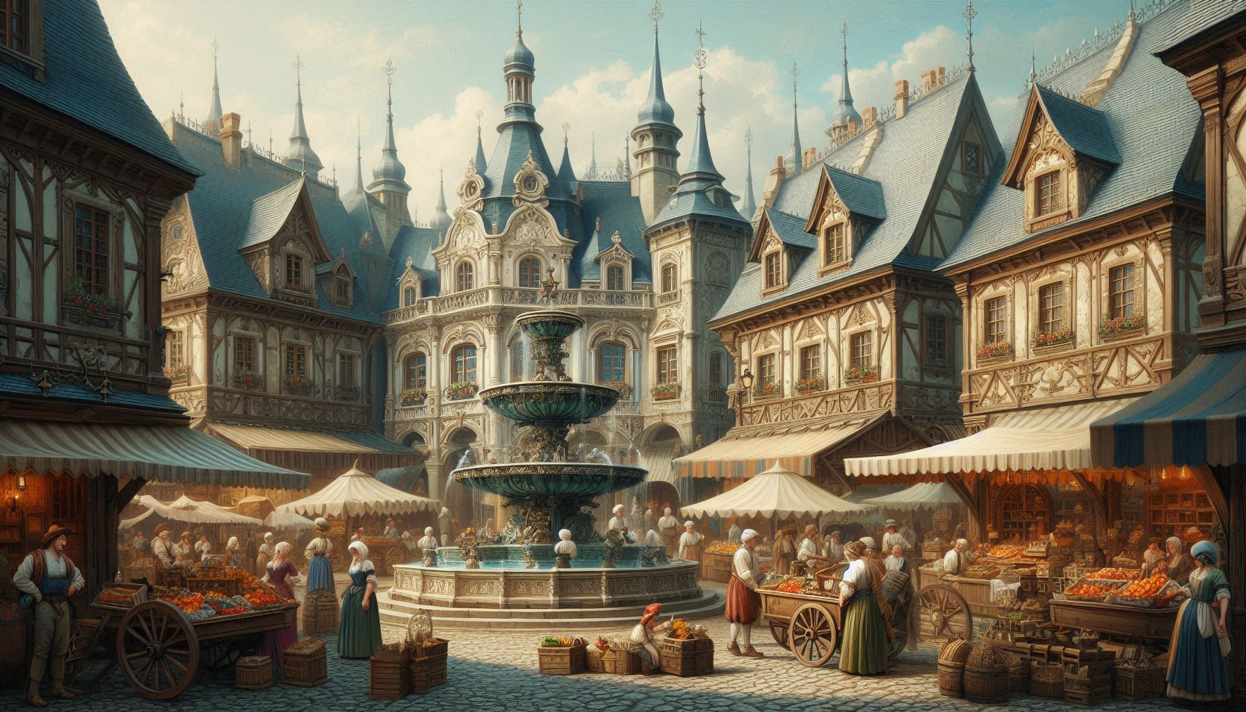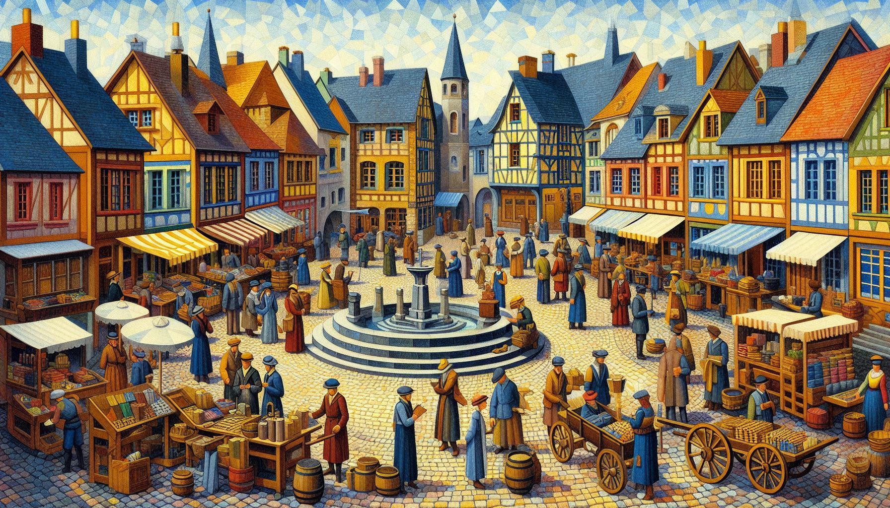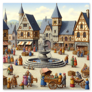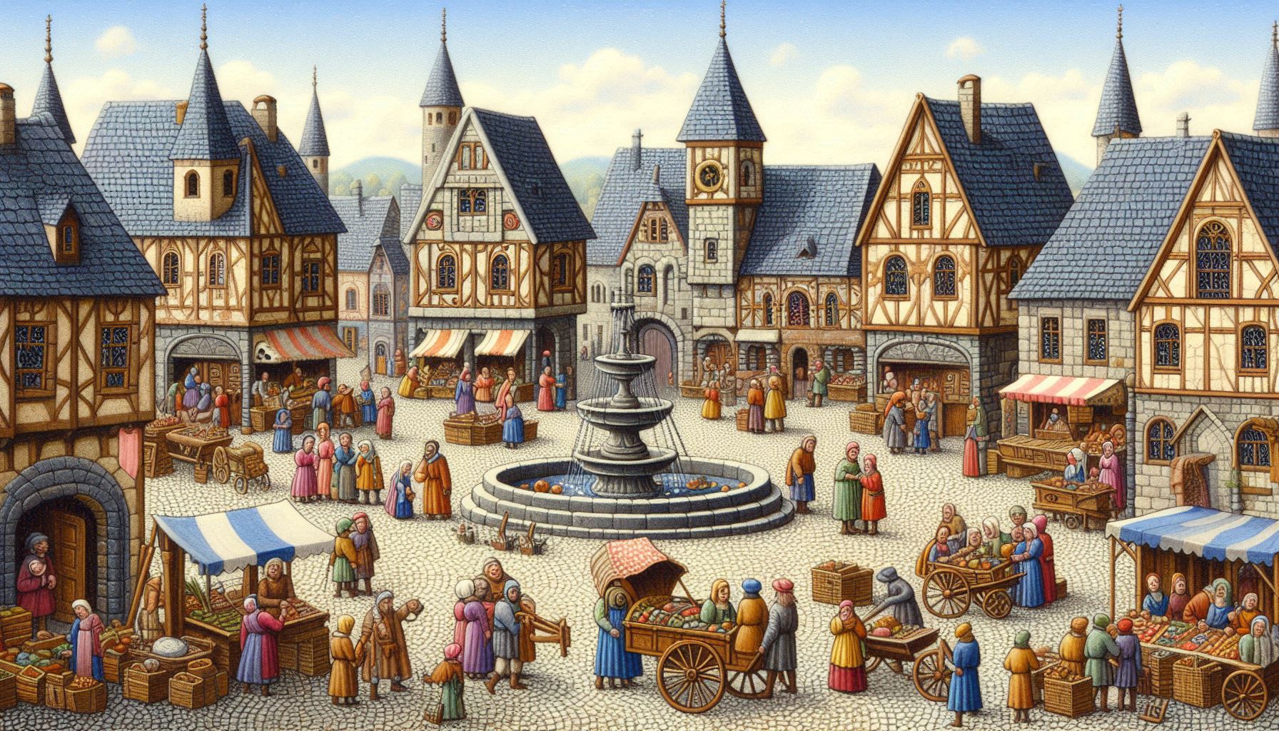 Markt im Mittelalter - Klumbies-de-AI-Kunst