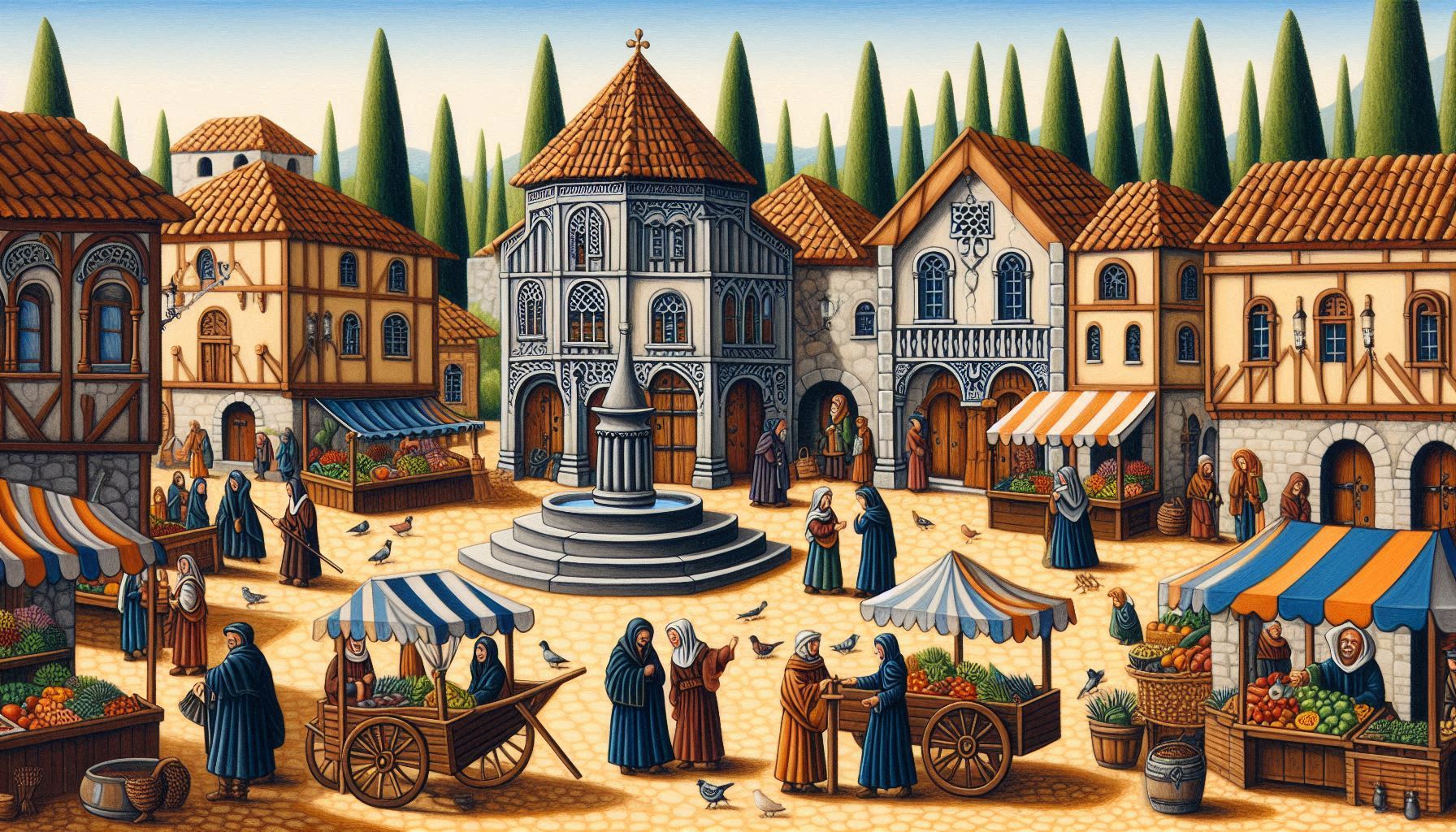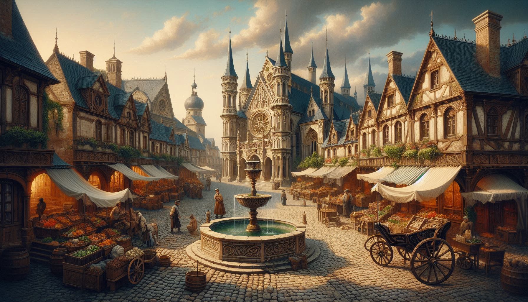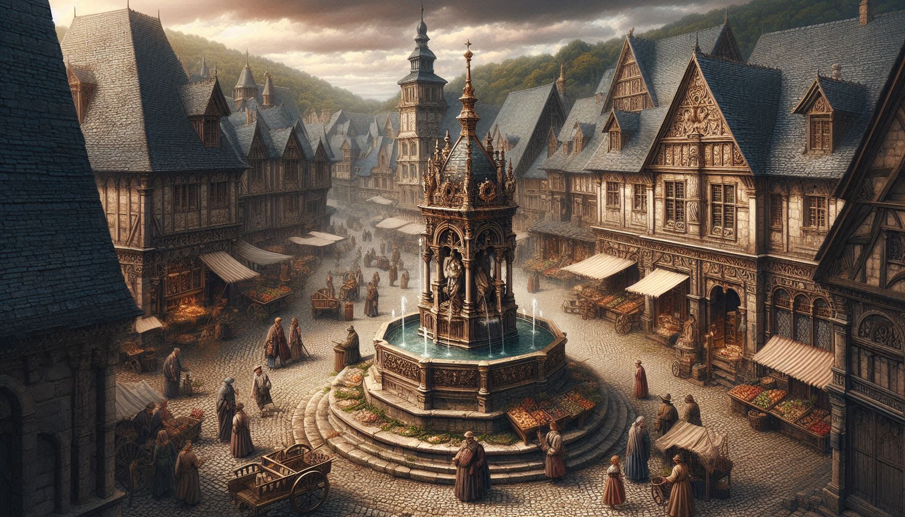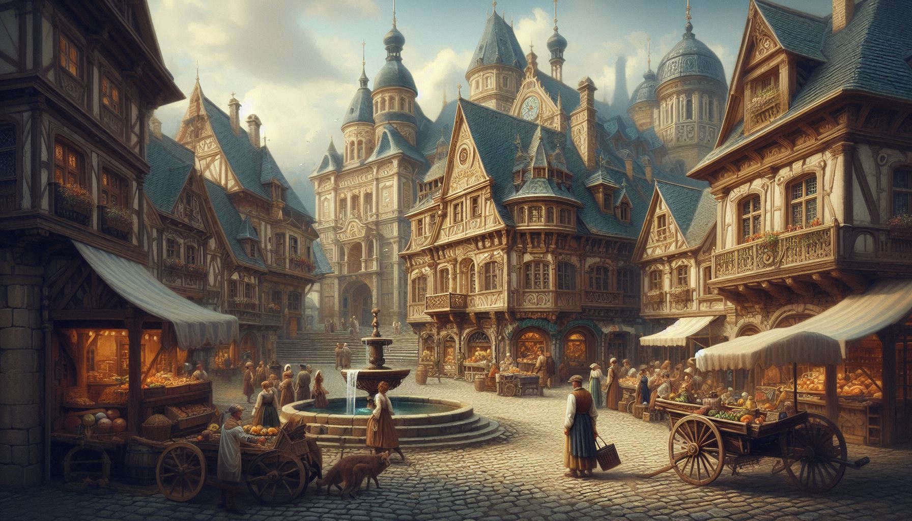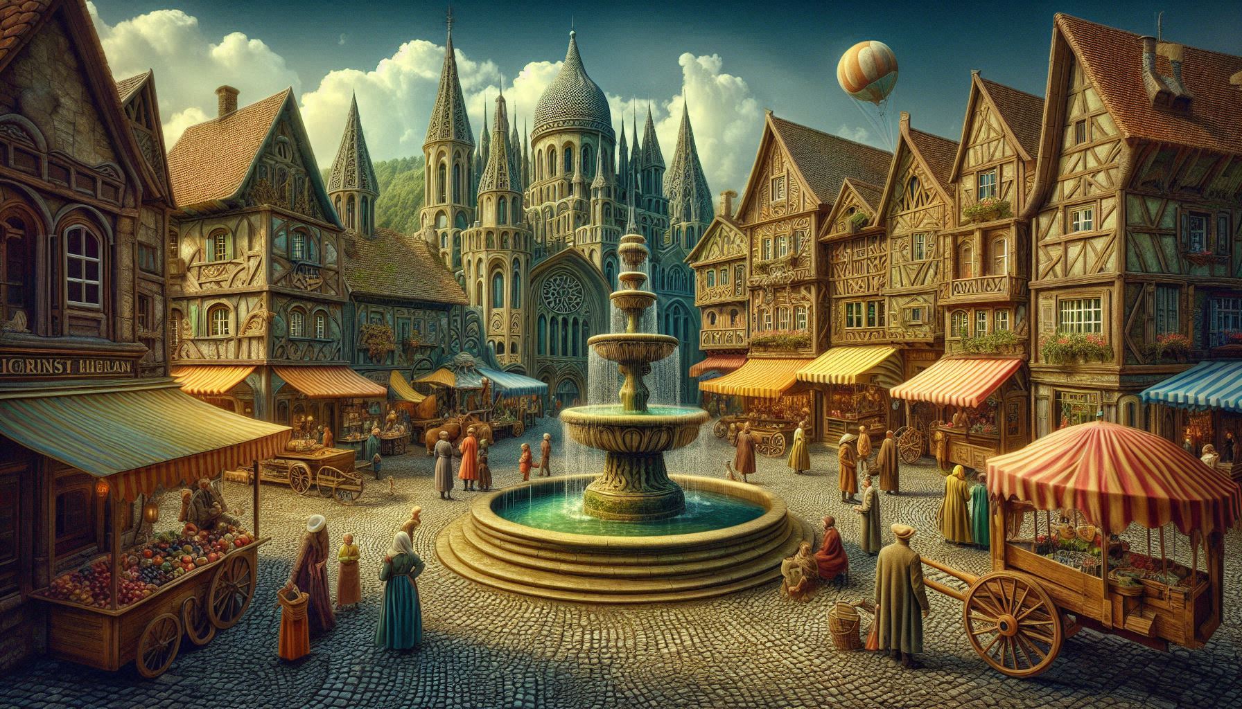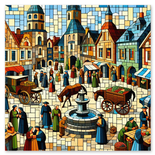 Markt im Mittelalter - Klumbies-de-AI-Kunst